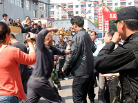 ![]() 李翔的一名同学则称,熟悉李翔的朋友均认为,事件也许仅仅是一起普通的抢劫案,与其生前所从事的职业并无关系。李翔的未婚妻丽丽也在其微博“lytv_李翔”中发帖称,“请不了解情况的人不要再转发了,扭曲误解了很多事实,请你们祝福翔子一路走好,谢谢大家了。”图为一名愤怒的群众向凶手挥拳。 |