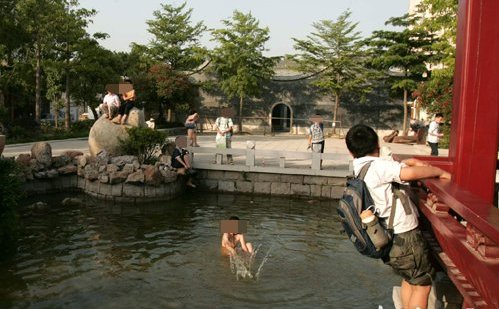 附近市民吴先生说,安泰河公园的水池常有小孩子跑来玩耍。前段时间,天热的时候,有成群的学生跳下去游泳。“安泰河公园刚刚开放,一些调皮的学生放学后,经常瞒着老师和家长跑到池里玩水,让人很替他们的安全担心。”吴先生担忧地说。