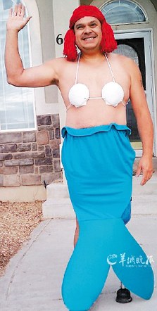 麻辣老爸的美人鱼装扮