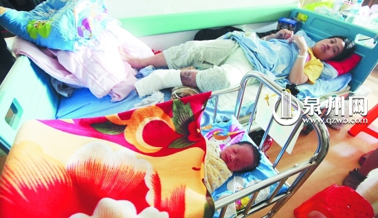 泉州网-东南早报讯 (记者 陈翛 庄丽祥 文/图)因为一个小伤口未得到及时处理,怀孕9月即将分娩的陈丽钦左腿严重感染肿胀。昨日,喜讯传来——陈丽钦生了个男孩,母子平安。由于脚伤,她现在还没法亲手抱儿子。
