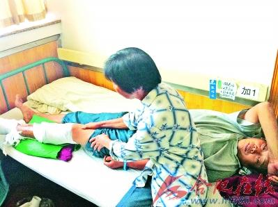 昨日下午6点,记者在市一院见到来院救治的郑理平时,他身上多处骨折,正在创伤骨科住院。经过初步治疗后,郑理平左腿裹上一层厚厚的纱布。陪护郑理平的是一位穿着朴素的六旬女子,这位和郑理平年龄相仿的瘦弱女子是他的“母亲”。女子身份被人透露后,让在场的人惊愕不已。儿子57岁,“母亲”62岁,怎么可能?她名叫顺贵,是郑理平的婶子,不是他的母亲。“我嫁到郑家后,他的父母都离世了,我又当婶子又当娘抚养他到现在,所以很多人都把我当他娘。”