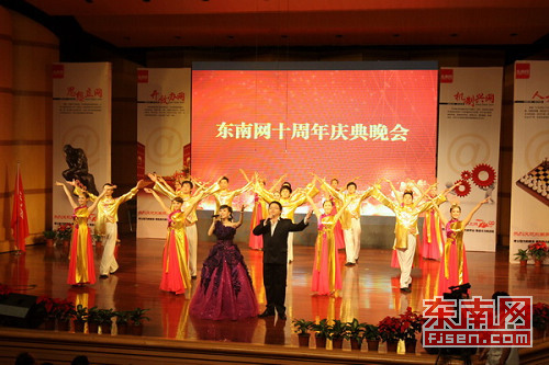 中央对外宣传办公室网络宣传局给东南网发来贺电,充分肯定东南网过去十年所取得的成就;在北京出席党的十七届六中全会的省委常委、宣传部长袁荣祥发来贺信,并提出殷切希望;福建省委宣传部副部长、福建日报报业集团党组书记、社长蔡小伟在晚会上致辞。