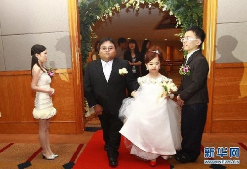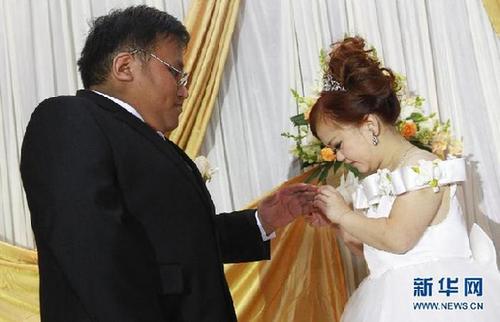 “袖珍夫妻”的甜蜜婚礼 共同许下爱的誓言