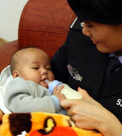 11月30日,福建省莆田市公安局一位女民警悉心照顾一名刚被解救的被拐婴儿。