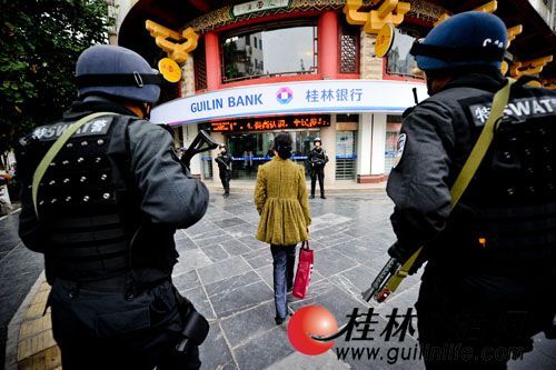 在南京发生持枪抢劫储户的恶性案件后,桂林市公安局6日召开紧急会议,全面部署加强对桂林各银行网点的安全检查,并向社会发出“个别确有困难的取款数额巨大的群众,可拨打110求助电话,警察将对其提供大额提款护送服务”的承诺。