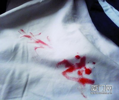 厦门网-厦门晚报讯(文/图 记者 谢雨真)近日,海沧实验中学初二年段要分班的消息在初中部校区传开了。得知这个消息后,不少学生表示难以接受这样的安排,因为“这是要破坏同学间好不容易建立起来的感情”。为了抵制学校这个决定,一些学生联名写抗议书,甚至还用血写下了“抗议”二字。前天,多名学生还致电本报市民热线5589999,说希望得到媒体的帮助。