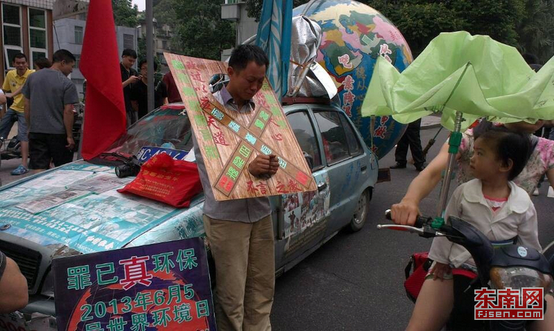 蒋桂山自制“枷锁”罪己提倡环保遭围观