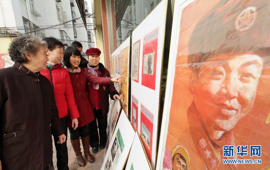 此次展览展出的“雷锋藏品”全部是社区居民刘建德的收藏品,包括报纸、期刊、明信片、邮票、画册等。新华社发(张驰 摄)