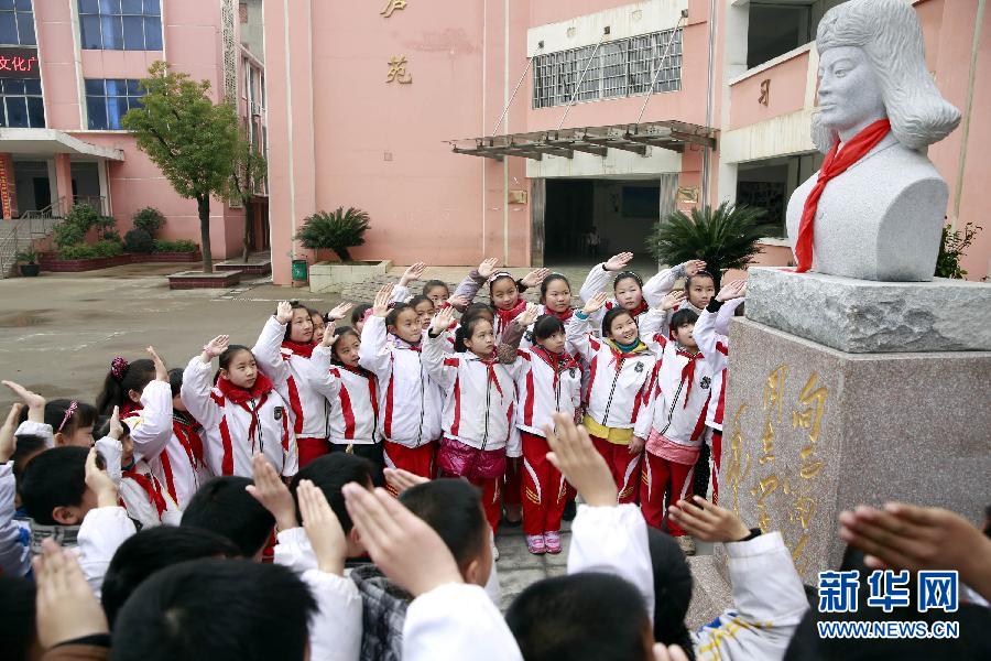 3月4日,江西省九江市庐山区匡庐小学开展“学习雷锋,我们在行动”主题教育活动,活动包括学习雷锋事迹、传唱雷锋歌曲等,激励学生们争做新时代的雷锋传人。这是小学生们向校园内的雷锋雕像敬礼。新华社发(张海岩摄)