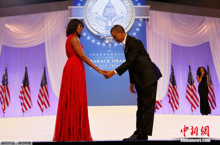 2013年1月21日,美国连任总统奥巴马就职舞会在华盛顿举行。奥巴马与米歇尔跳了第一支舞,米歇尔穿上华裔设计师吴季刚设计的红色露肩雪纺纱丝绒礼服,惊艳全场。