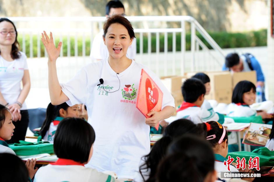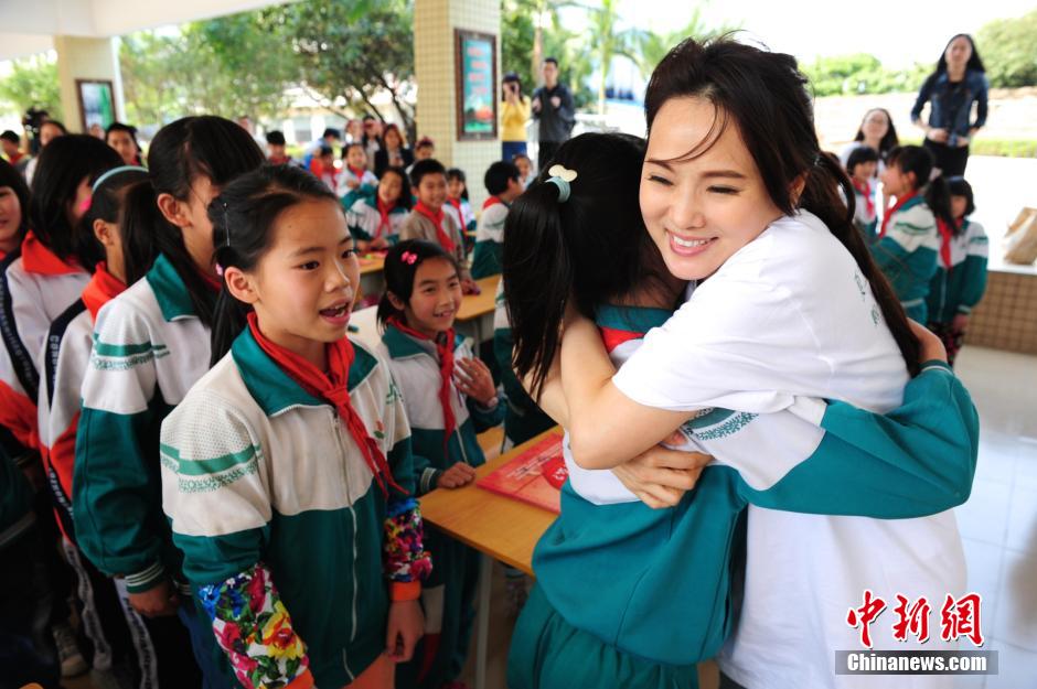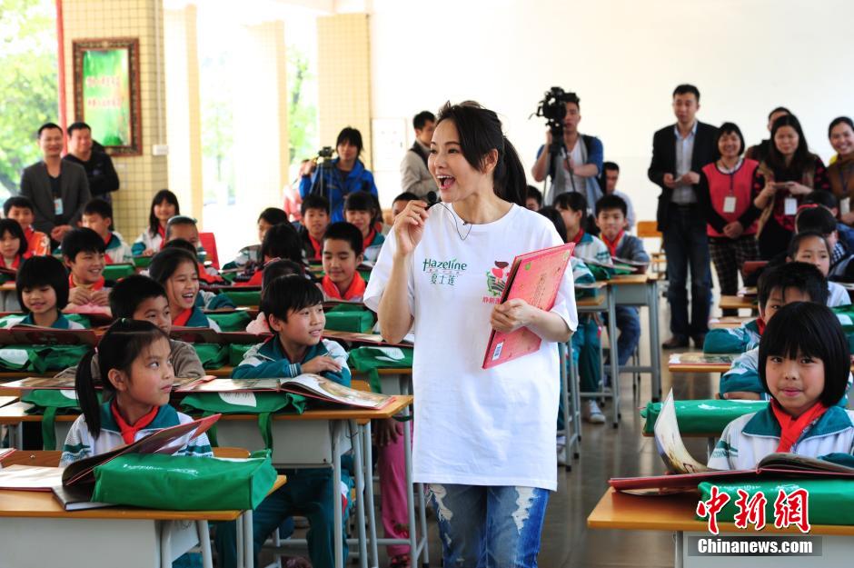 3月24日,台湾著名歌手、演员伊能静来到广州从化高平小学,向该校小学生捐赠“夏士莲·静新绿书包”,并亲自给小学生授课——爱是什么?“夏士莲·静新绿书包行动”将惠及广东、四川、广西、湖南、江苏、福建等六个省15000名小学生,书包内分别有《爱是什么》、《孔子的故事》、《安徒生童话》、《爱丽丝梦游仙境》等书籍,传递社会对儿童的关爱与祝福。中新社发陈文 摄