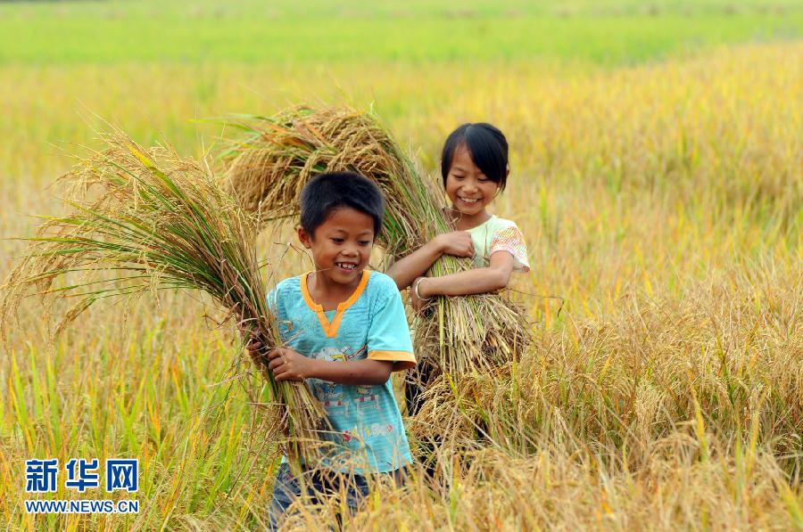 广西柳州市柳江县成团镇莲花村7岁的韦佳鹏(前)和9岁的姐姐韦梦蝶在田间帮父母收割稻谷(2009年10月25日摄)。蹒跚学步时,你给我依靠;委屈流泪时,你给我安慰;下雨时,你为我撑起小花伞;父母不在家时,是你抱着我,让等待不再孤单…… 一起背着小书包上学校,一起在田野里撒欢奔跑,一起数夜空里的繁星…… 成长的责任,呵护的温暖。姐姐,是童年最亲密的小伙伴,最甜蜜的回忆,最难忘的真情。 新华社记者 黄孝邦 摄