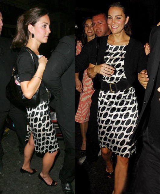 当地时间2007年5月18日,凯特米德尔顿离开夜店。以黑白圆点丝质连衣裙搭配黑色小外套,加上一双鱼嘴高跟鞋,优雅中带几分随性。
