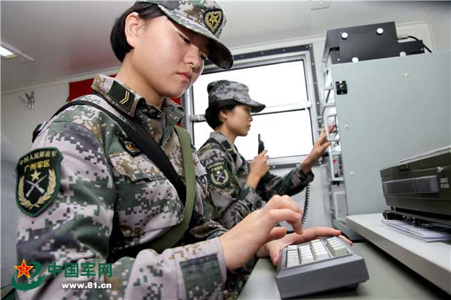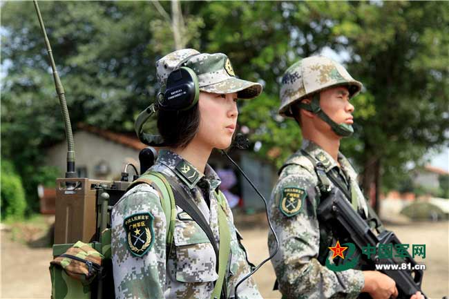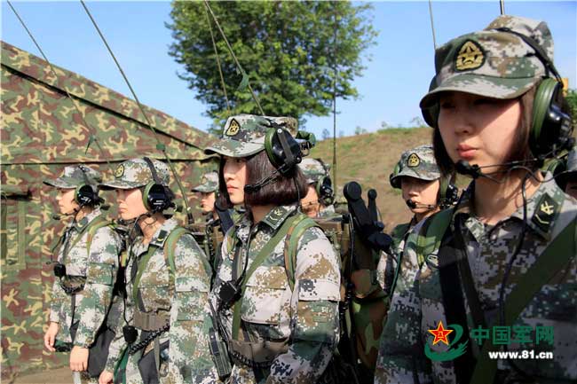 这次演习与以往不同之处是演练场地多了一道亮丽的风景,十几名女兵首次跟随该旅踏入演练场地,她们分别在该旅党委一班人身边进行通信保障任务。在此之前,她们在去年就开始学习报务报话,也是该旅第一次让女兵学习以往男兵的任务--报务报话。她们一个个看起来很娇弱的身体身后却背着30多斤的电台设备,耳朵两边还戴着厚重的耳机,再加上武汉的“秋老虎”,极大的考验她们的意志力和体力。然而,她们一个个斗志昂扬,血性十足,浑然一体的“战地玫瑰”。