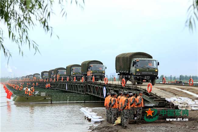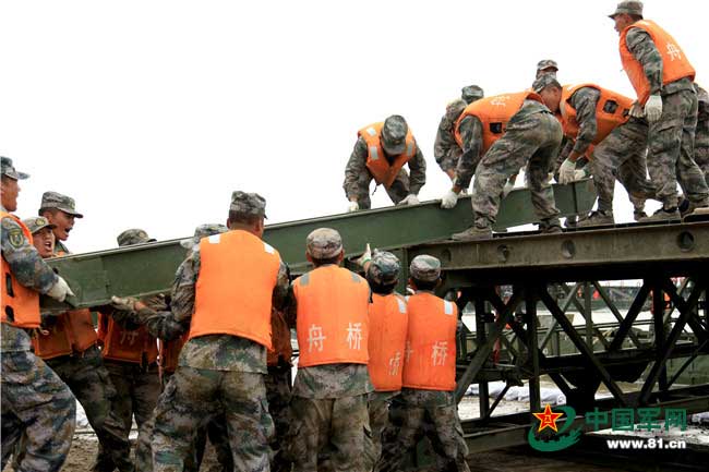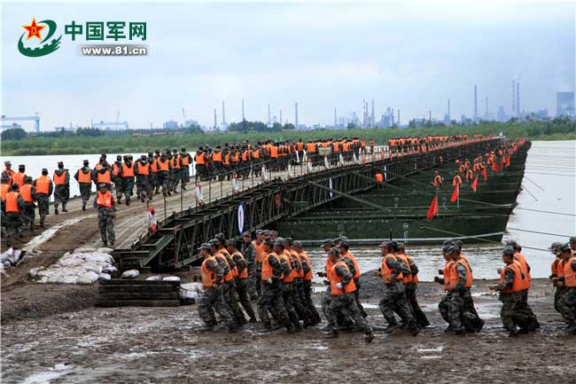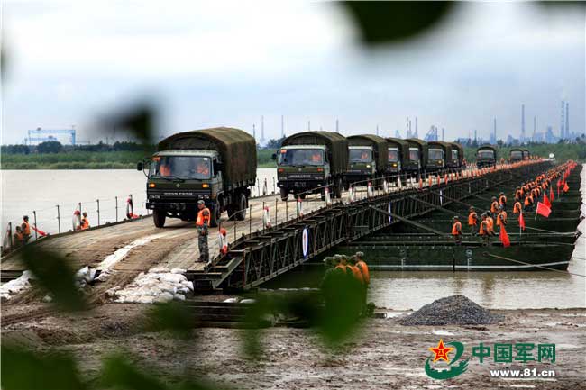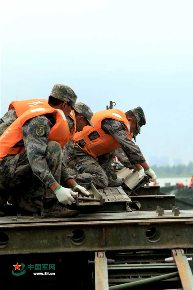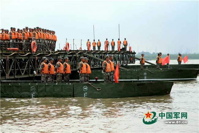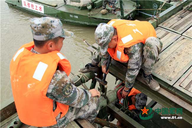 某舟桥旅长江实兵演习 通信女兵首亮相