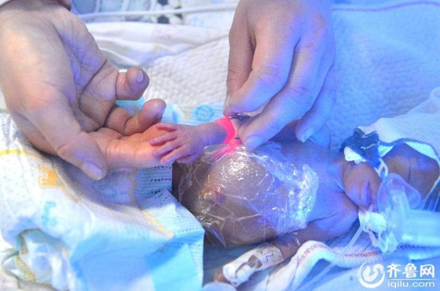 1月13日消息,2015年1月9日,菏泽市东明县小井镇东紫荆村,31岁的吴俊平一次产下五胞胎,四个女儿,一个儿子。除其中最小的一个女婴不幸夭折外,其余四个婴儿全部存活。但是由于早产,四个婴儿最大的只有1.135公斤,最小的儿子仅重0.5公斤。目前,四个婴儿仍在新生儿重症监护室内,最小的男婴仍未脱离生命危险。图为婴儿恒温箱里的五胞胎婴儿。