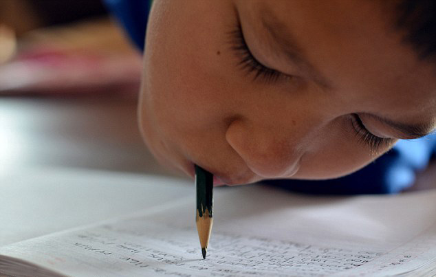 印尼无腿无臂男童用下巴玩游戏用嘴写字