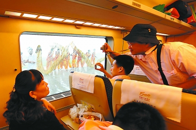 动车组停靠 吸引乘客拍照留念