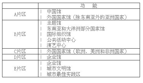 上海世博会规划方案综合步行适宜距离、人体尺度和参观者的认知度等因素,提出了“园、区、片、组、团”5个层次的结构布局,即: