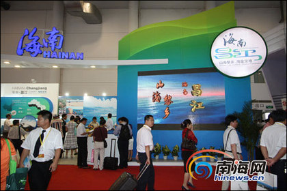 海南展馆吸引众多客商驻足(特约记者 曾高文 摄)
