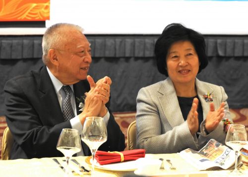 3月29日,全国政协副主席董建华和福建省委书记孙春兰在推介会上交谈。