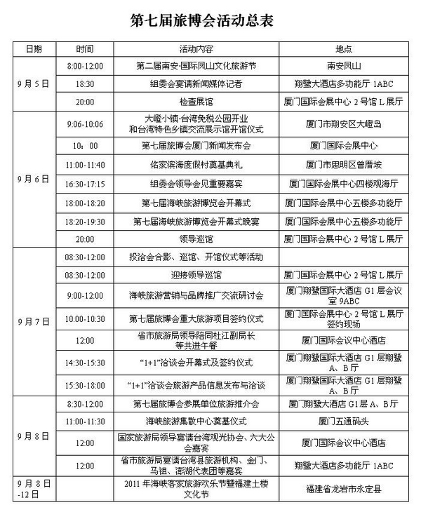 第七届海峡旅游博览会主要活动安排