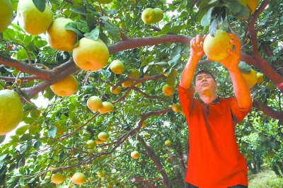 8日,仙游县度尾镇举行文旦柚开园节,当地3.5万亩文旦柚同步开采,产值将达近亿元。果农高兴地说:“柚子成了咱们农民的致富果。”林剑冰 摄