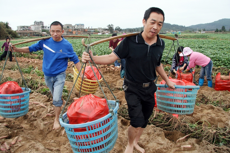 ![]() 2011年11月5日,福州日报“党报记者乡村行”走进长乐市文岭镇石壁村,记者叶义斌(右) 、张铁国(左)在田里体验挑地瓜。 |