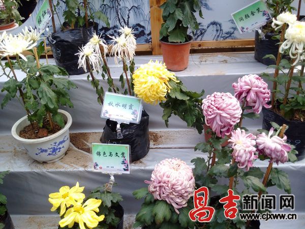 图为展出的菊花品种秋水明霞等。昌吉新闻网记者 刘辉摄
