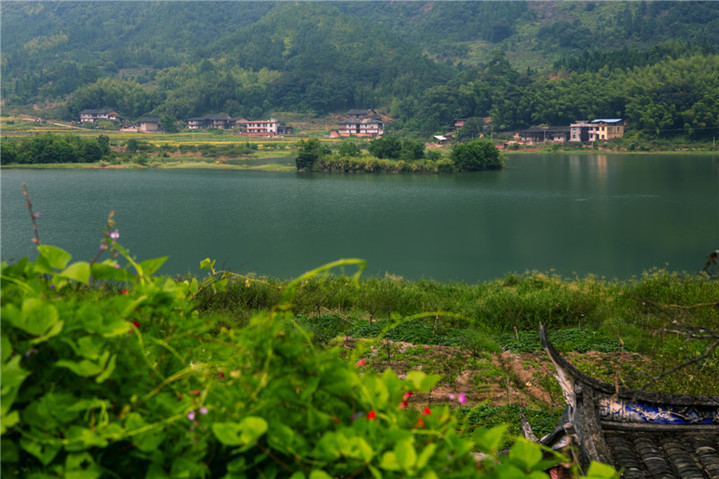 (山区难得一见的175亩水域面积湖面,湖中倒影山形云雾,周围李树环绕,村庄房屋座落其间,颇有泸沽湖风范。让你一进村就不自觉放松下来,想在这样一个地方静静地发呆就好。)