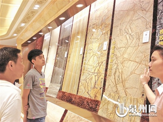 工作人员向参观者介绍一款高档瓷砖,这款瓷砖外观近似天然大理石。 (和军 摄) 记者了解到,此次活动由南安市政府、泉州市经济和信息化委员会、泉州晚报社联合主办。连日来,在南安市区主要街道以及各乡镇主要路口,都可以看到首届家装节的宣传广告。从昨日开始,家装节参展企业还分别前往南安下辖的诗山、梅山、洪濑、仑苍、英都、东田等乡镇宣传家装节活动。作为中国建材名城,南安在支柱产业方面的重大举措引起了业界和民众的普遍关注。 有哪些品牌将参展,现场又将有哪些重磅优惠活动?带着市民感兴趣的问题,记者采访了活动主办方。据介绍,本次活动除了邀请联合会的一些会员企业参与,例如九牧卫浴、富友木门、鼎美家具、左邻右里家具等大品牌之外,也邀请了一些在南安具有良好知名度和美誉度的家装、建材企业。例如华浔品味装饰、名家装饰、东鹏瓷砖、蒙娜丽莎瓷砖、美乐富定制家具、好莱客衣柜、好兆头厨柜、箭牌厨柜、方太厨电、友邦吊顶、今顶吊顶、三菱重工中央空调、芬尼空气能热水器、欧特斯空气能热水器、金仕盾铜门、介仁艺术门窗、春天木门、光明城灯饰、亮晶晶灯饰、森歌集成灶、大自然木地板、菲林格尔木地板、创享智能家居、大津硅藻泥、绿森林硅藻泥、冠湘楼梯、飘家居软装体验馆、卓宜思布艺、德国玛堡壁纸等。“参展品牌都是各个细分领域颇受泉州市民喜爱的品牌。”据介绍,届时,这些家装建材企业将在现场举行抢购、联购、免单、抽奖等一系列优惠让利活动,回馈消费者。 |