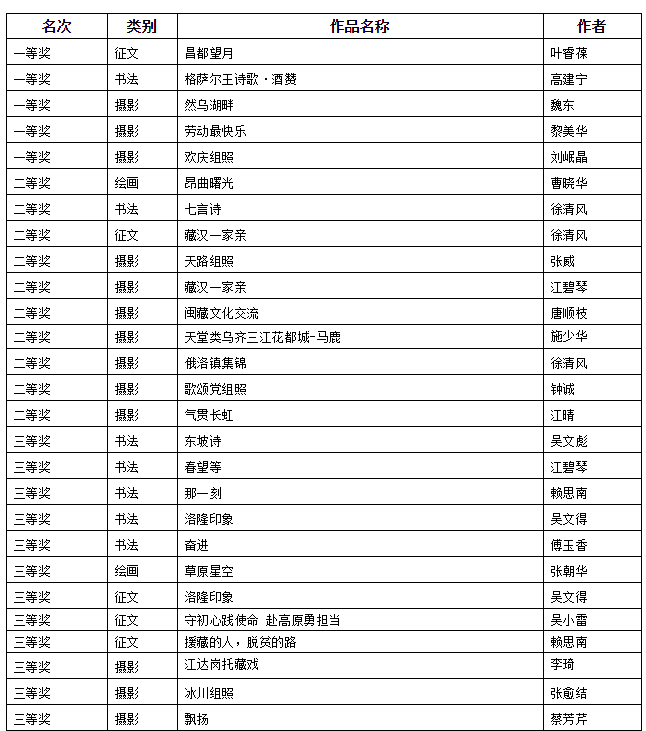 参赛作品 图片来源:福建第九批援藏队 为献礼华诞,热烈庆祝中华人民共和国成立70周年,9月福建省第九批援藏工作队组织开展了“庆祝新中国成立70周年书画、征文、摄影活动”大赛,评出一、二、三等奖若干名。 10月9日,“逐梦昌都 建功高原”——喜迎新中国成立70周年书画、征文、摄影作品展评选活动在福建公寓圆满落下帷幕。参赛的各幅作品精彩迭出,活动主题突出,多视角、多方位反映了新时代藏东明珠——昌都美好幸福的人文生活、社会风景,充分展现了闽九援队员主动融入藏东高原、注重民族团结、奋发进取、努力作为的良好精神风貌。 活动组委会特别邀请了昌都市文化局德嘎旺姆局长,与市政府办林孝棋副秘书长、市委宣传部张小龙组成评审团,经过公开、公平、公正评选,共评选出一等奖5名,二等奖10名,三等奖17名。接下来,公众号“福建第九批援藏队”将陆续展播奖获作品。